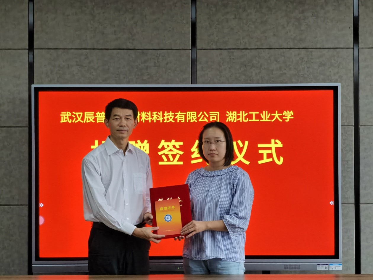 计梦介绍了企业的发展概况。她表示,武汉辰普铭新材料科技有限公司一直以来关心支持湖北教育事业发展,秉持着“善心、爱心、信心、真心、雄心”的理念,将产学研融合作为公司的重要发展方向,坚持助力高校创新复合型人才培养工作。
