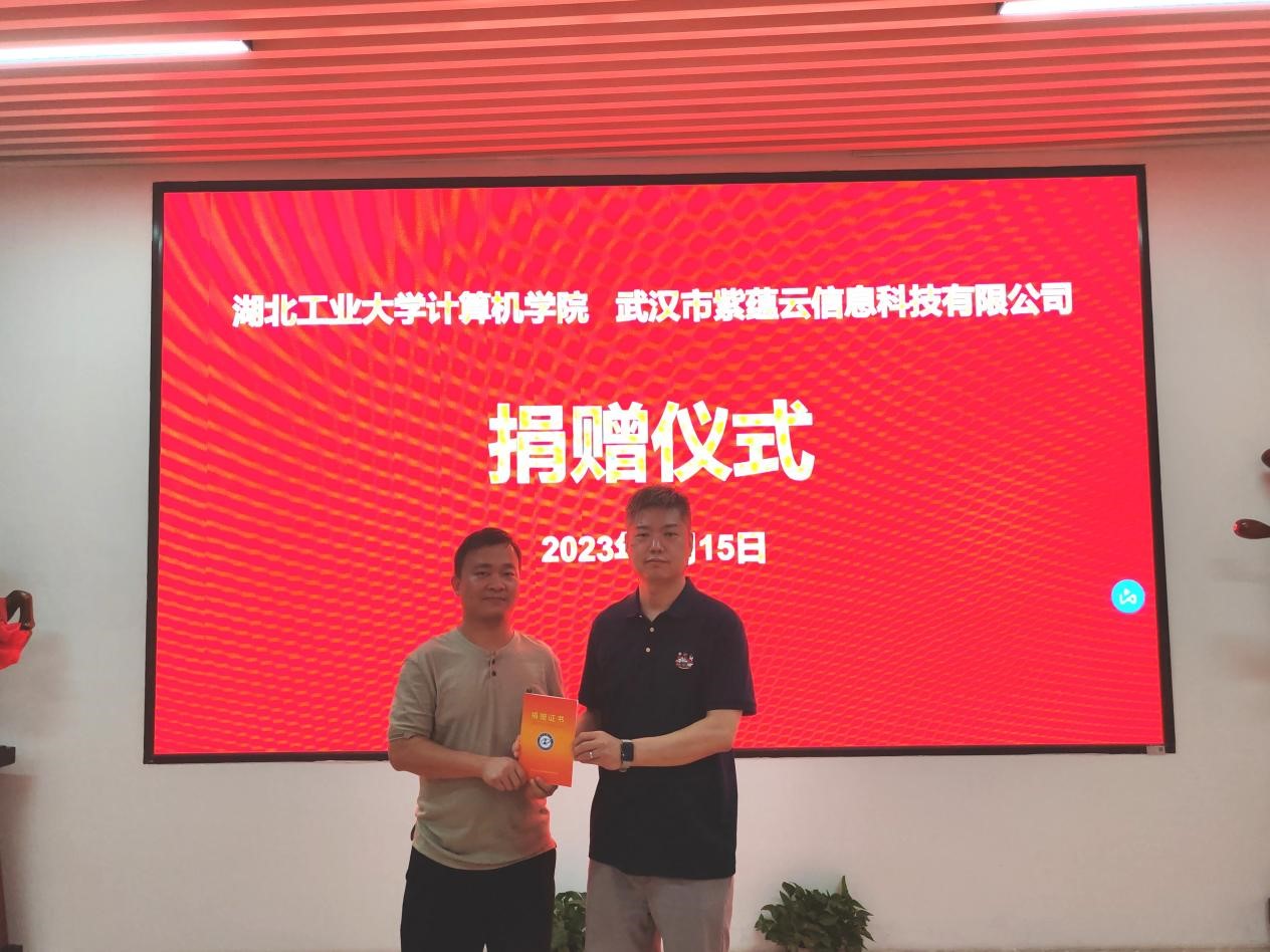 7月15日上午,武汉市紫蕴云信息科技有限公司向我校捐赠350万元用于大数据与人工智能产业学院学科建设,捐赠仪式在科技楼4楼举行。公司代表、计算机学院领导班子部分成员及计算机学院教师代表参加仪式。