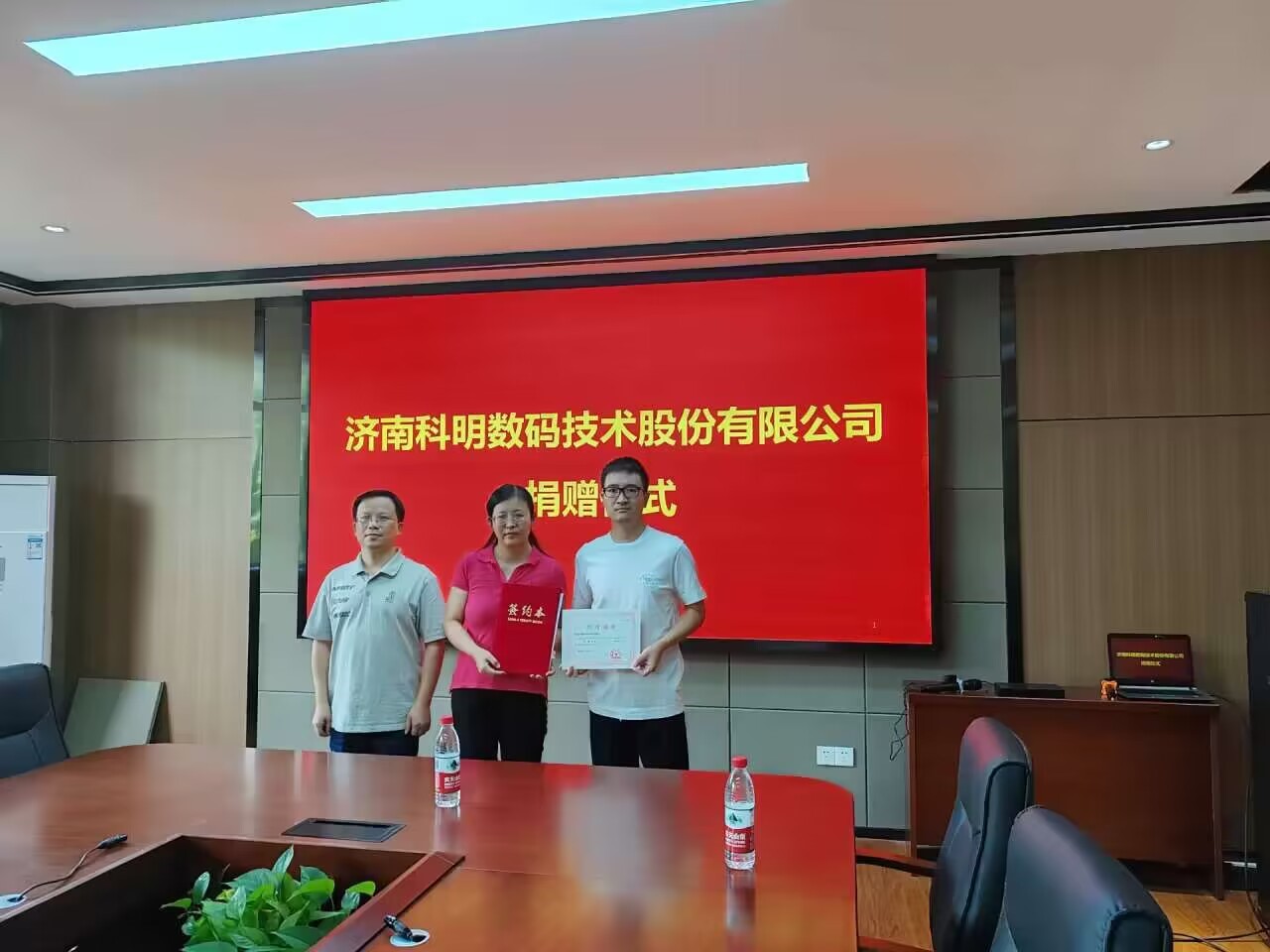 8月11日,济南科明数码技术股份有限公司向我校捐赠仪式在电气学院举行,捐赠金额为300万元,用于电气学院电力电子创新平台建设。科明数码企业代表,学院副院长常雨芳,自动化系、电气工程系教师代表参加捐赠仪式。